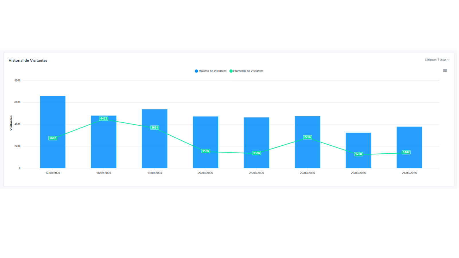 Barras azules: indican el número máximo de visitantes alcanzado en un día.